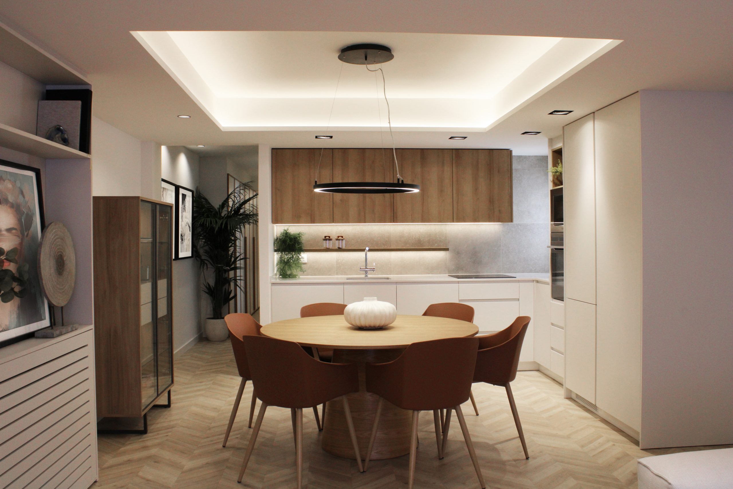 En la cocina, la belleza debe ir acompañada de funcionalidad. Una buena distribución, armarios bien organizados y electrodomésticos accesibles hacen que el día a día sea más cómodo. Las soluciones inteligentes, como cajones con sistema de orden, iluminación LED interior o estantes extraíbles, ayudan a mantener el espacio limpio y práctico.