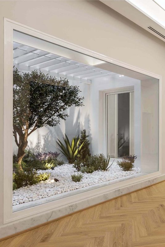La iluminación es indirecta, empotrada, para usar el espacio después de cenar cuando el calor ha bajado y la ciudad respira más lento.